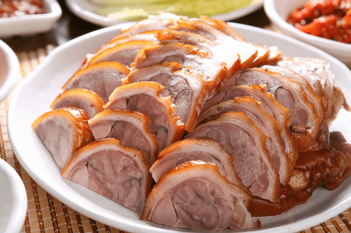 高溝捆蹄系漣水縣高溝鎮(zhèn)祖?zhèn)髅麕熰崌?guó)文所創(chuàng),選用豬蹄膀肉配以十余種佐料,以小腸衣捆扎為段,經(jīng)高溫蒸燜精制而成,多食不膩。