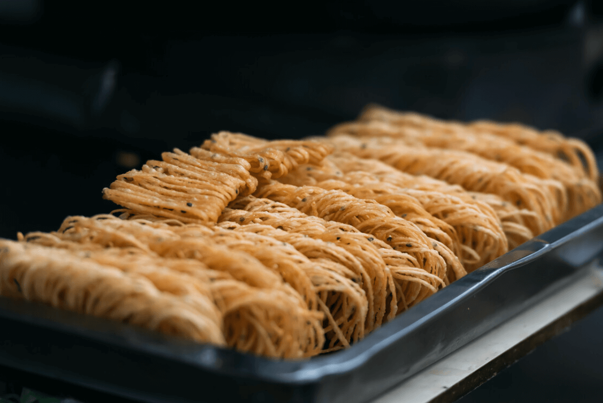 在淮安,茶馓屬婦孺皆知的美食。淮安茶馓創(chuàng)于清朝后期,距今有一百多年的歷史,又名“岳家茶馓”或“鼓樓茶馓”。茶馓既可干吃,也可用水泡著吃。
