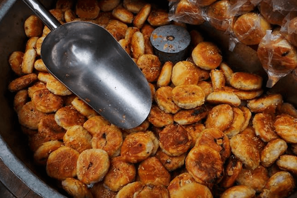 太平燒餅原名“橫埂頭”小酥餅,已有200多年的歷史。它僅有茶杯口大小,黃澄澄色似煮熟的蟹殼,里外18層,層層酥透。