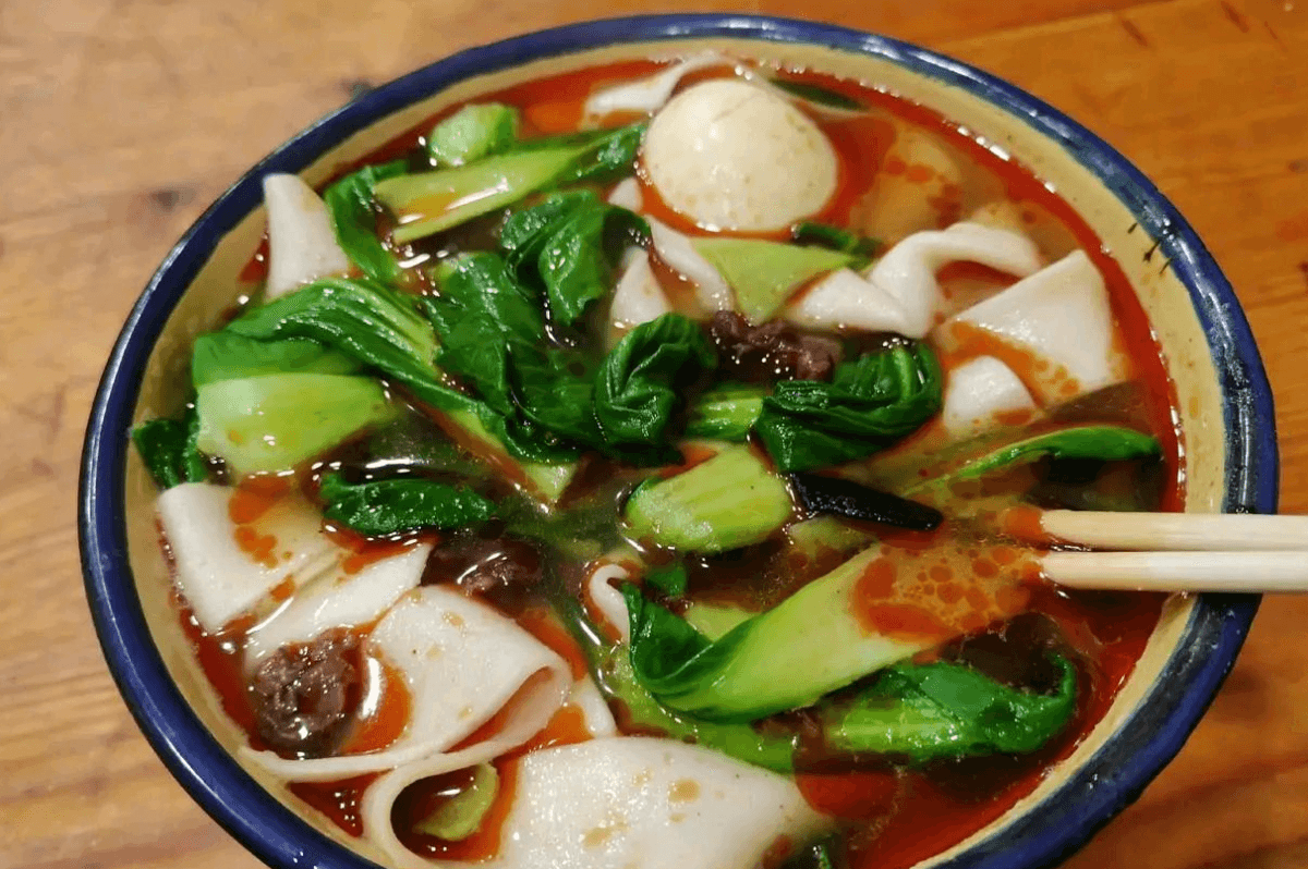 太和板面也稱為太和羊肉板面,因在案板上摔打而得名,煮好的板面,白的面條,綠的菜葉,紅的湯料,使人食欲大增。