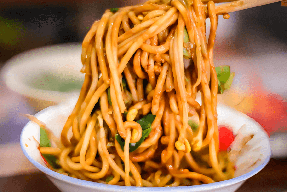 格拉條也叫格拉面,堪稱阜陽人的意大利面。格拉條的特色就是拌醬,芝麻醬是地地道道的香,還有辣醬一定是油炸的辣椒油,又香又辣,絕對美味。