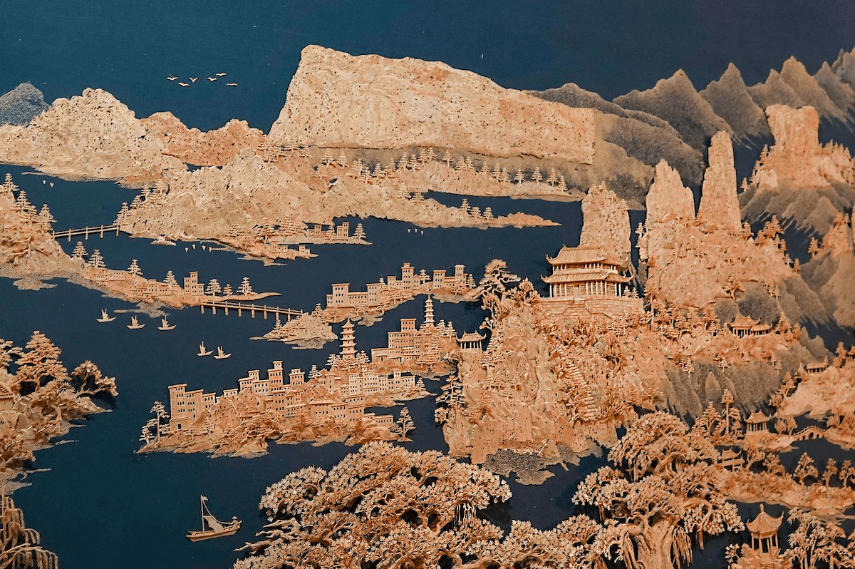 軟木畫是福州特產(chǎn)工藝品,主要使用手工雕刻而成,品種繁多,質(zhì)地輕軟,色調(diào)典雅,形象逼真,是當(dāng)?shù)赜忻墓に嚻泛吐糜渭o(jì)念品。